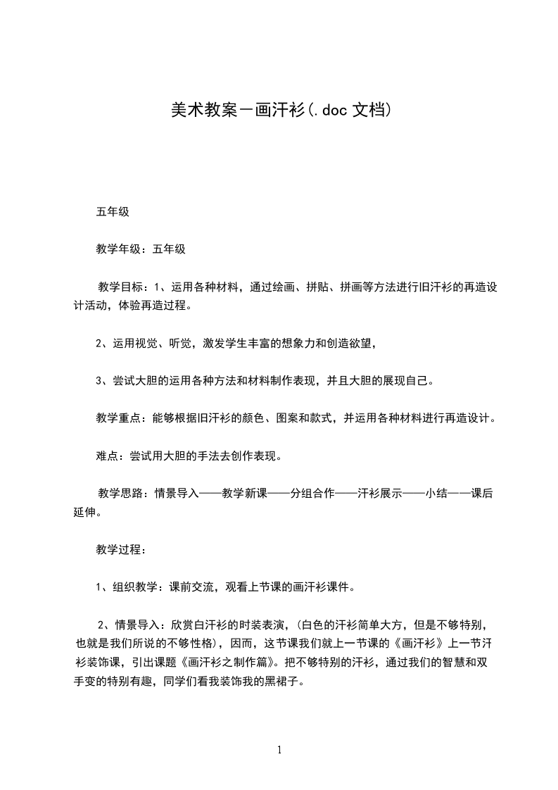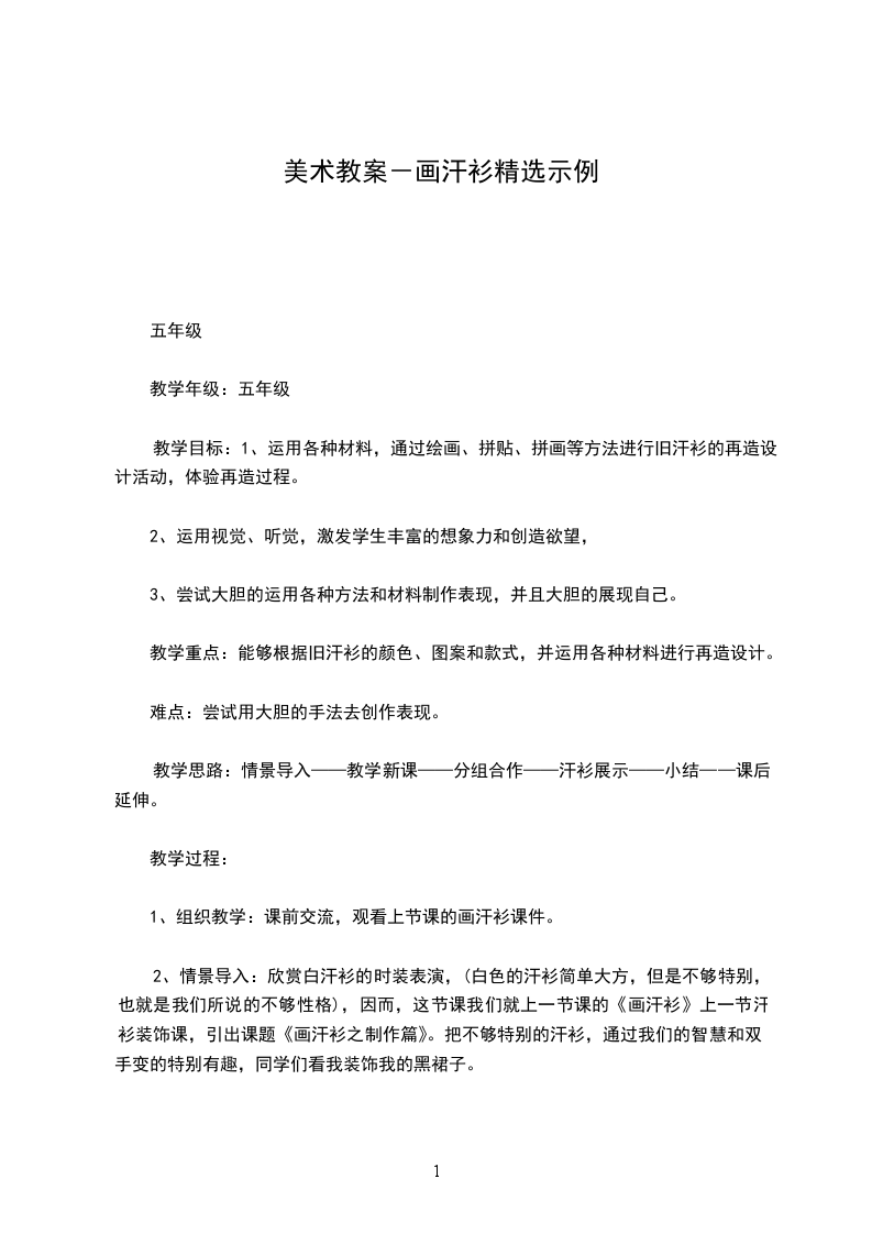 小学美术教案:六年级下册画汗衫教学设计教学目标: