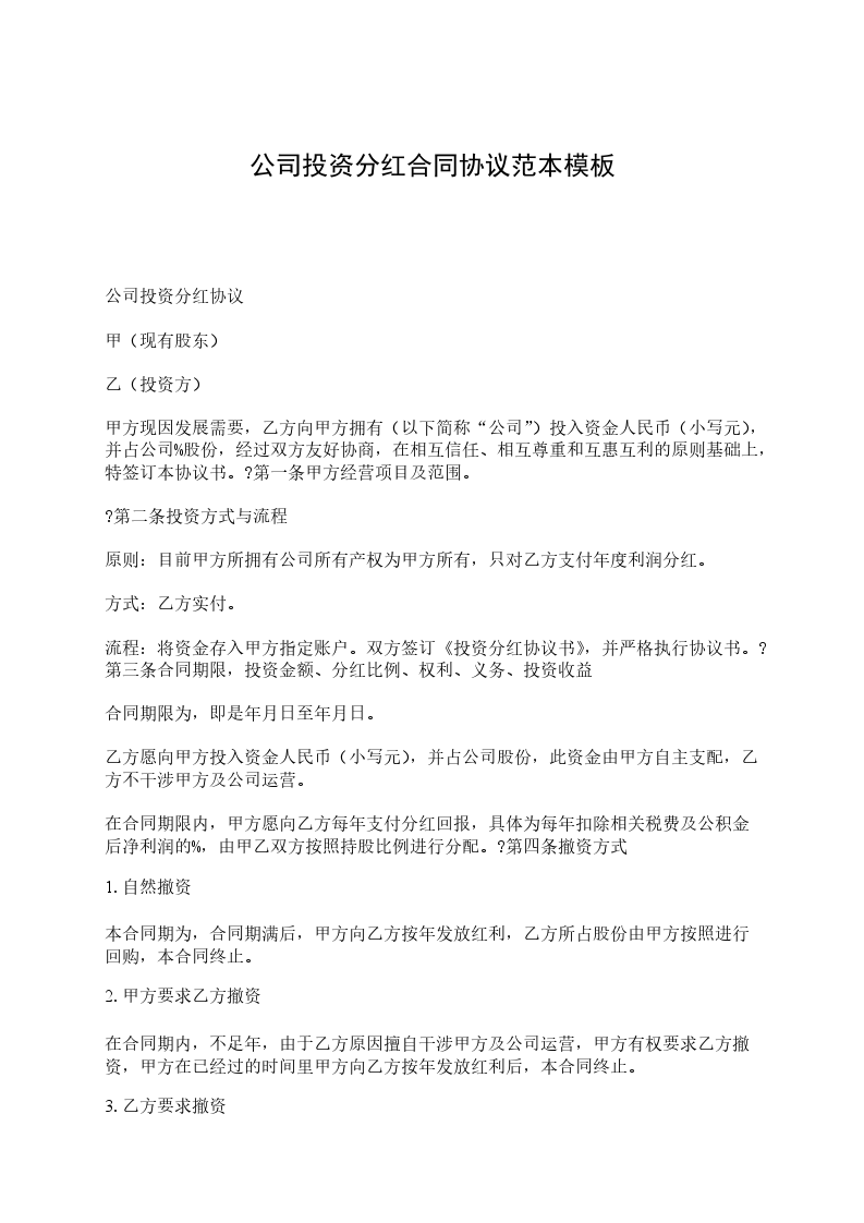 公司投资分红协议