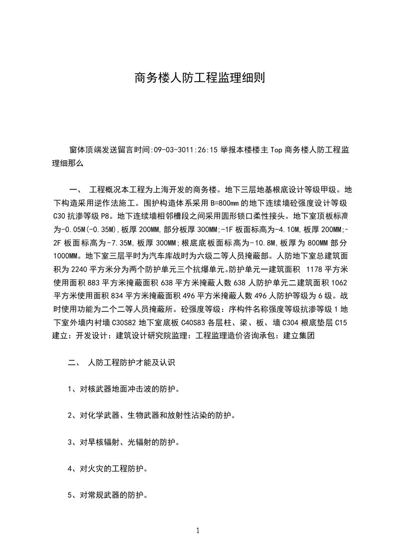 窗体顶端发送留言时间:09-03-3011:26:15举报本楼楼主Top商务楼人防工程监理细那么