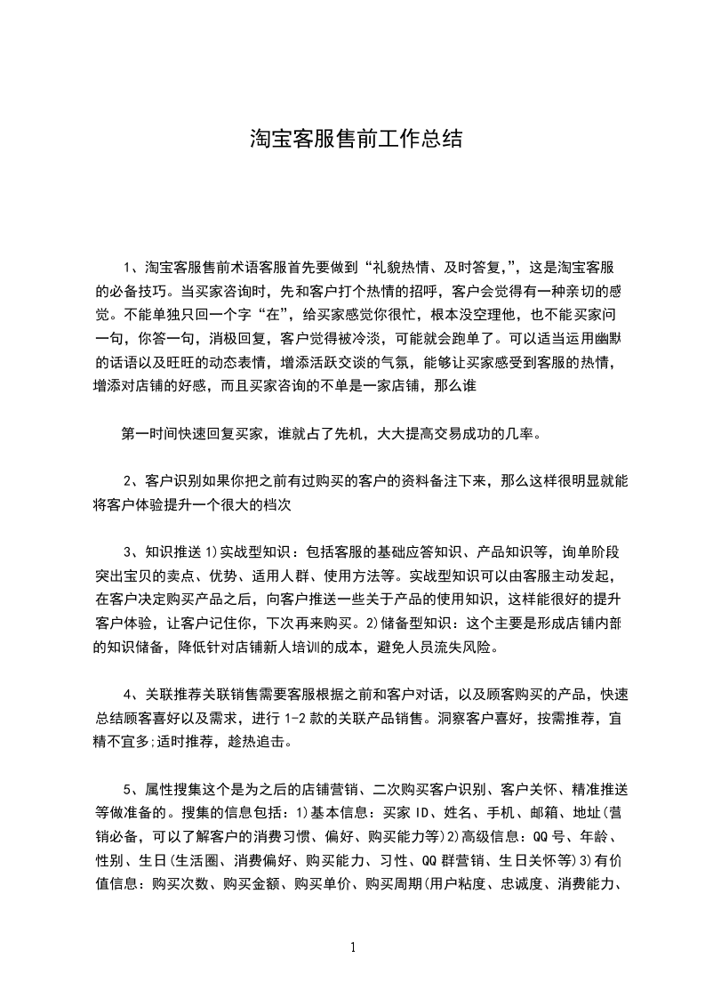 5、属性搜集这个是为之后的店铺营销、二次购买客户识别、客户关怀、精准推送等做准备的。搜集的信息包括:1)基本信息:买家ID、姓名、手机、邮箱、地址(营销必备,可以了解客户的消费习惯、偏好、购买能力等)2)高级信息:QQ号、年龄、性别、生日(生活圈、消费偏好、购买能力、习性、QQ群营销、生日关怀等)3)有价值信息:购买次数、购买金额、购买单价、购买周期(用户粘度、忠诚度、消费能力、等级划分等)4)高价值信息:商家自定义属性款式、尺码、颜色、喜好、回购、敏感肤质等等。这些信息有一些是客服可以在聊天过程中搜集,有一些是可以自动获取的,除了这两种搜集信息的方式,还可以创建调查问卷,引导用户填写信息,相应给予填写调查问卷的客户一些优惠劵。
