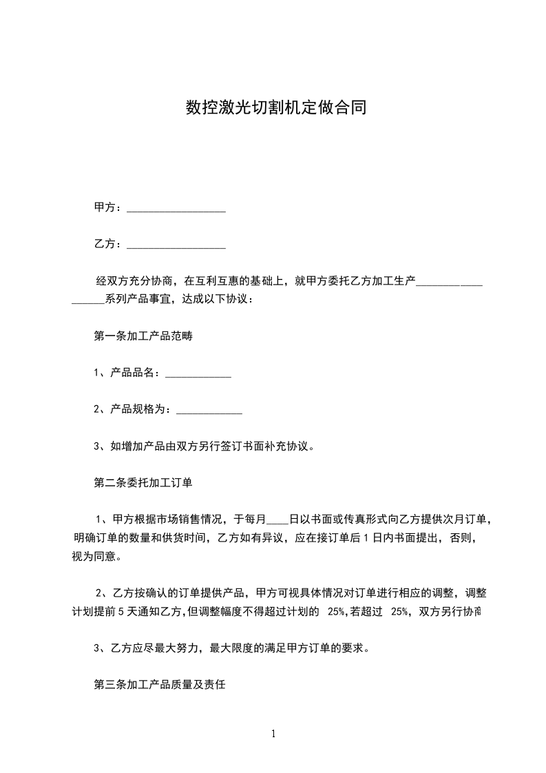 经双方充分协商,在互利互惠的基础上,就甲方委托乙方加工生产__________________系列产品事宜,达成以下协议: