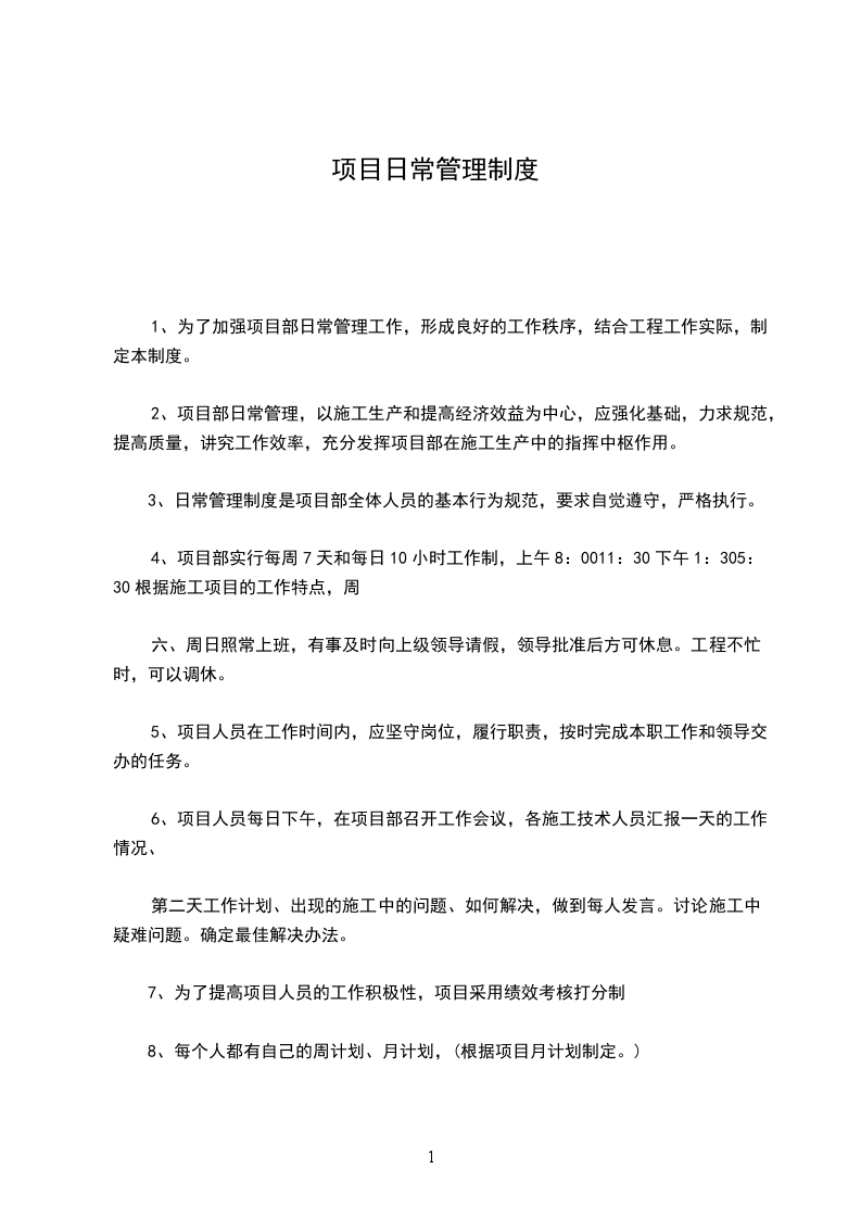 3、日常管理制度是项目部全体人员的基本行为规范,要求自觉遵守,严格执行。