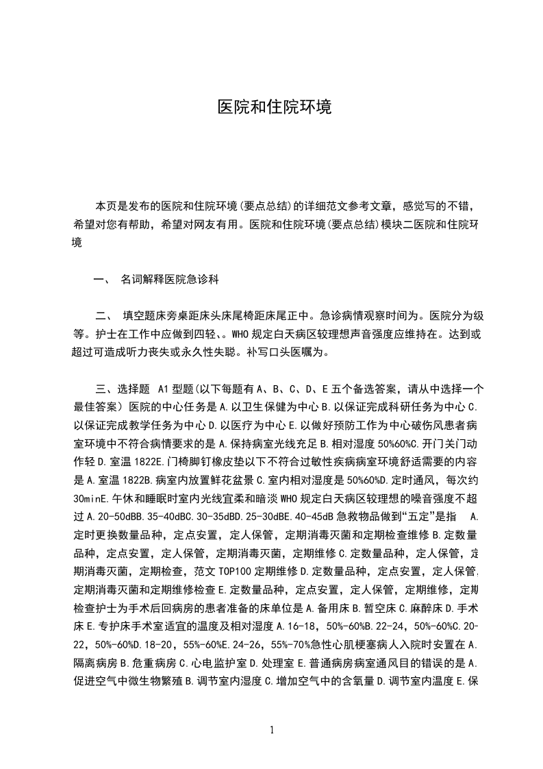 本页是发布的医院和住院环境(要点总结)的详细范文参考文章,感觉写的不错,希望对您有帮助,希望对网友有用。医院和住院环境(要点总结)模块二医院和住院环境
