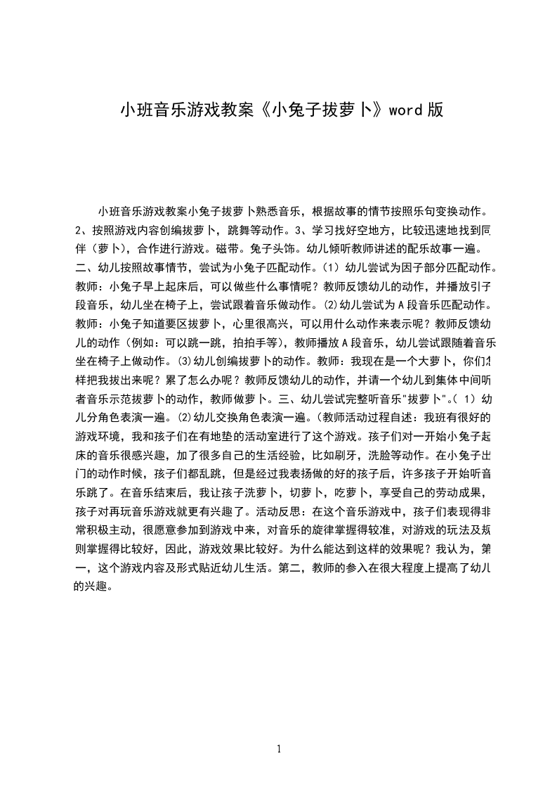 一、课件引出节奏儿歌。故事:有一只兔子叫跳跳,它呀最爱吃萝卜了,中午到了跳跳该吃中饭了,它来到菜地拔萝卜|拔萝卜|拔拔|拔0|,回到家打开水龙头,跳跳洗萝卜|洗萝卜|洗洗|洗0|,洗干净了,就把萝卜放在菜板上用刀切萝卜|切萝卜|切切|切0|,然后放在锅里炒萝卜|炒萝卜|炒炒|炒0|,不一会儿,萝卜就炒好了,跳跳就美美地吃萝卜|吃萝卜|吃吃|吃0|。