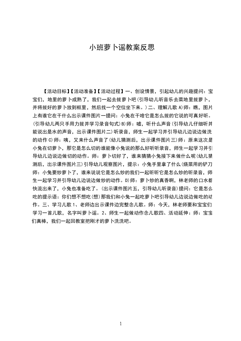 幼儿园大班音乐教案萝卜谣大班上学期音乐教案萝卜谣幼儿园大班音乐教案:快乐的小雪花活动设计意图:新纲要指出:在艺术活动中“要尊重幼儿个人的意志,给儿童自己选择表达内容和方式的自由”。大班幼儿节奏感较强,而萝卜谣让幼儿自选乐器伴奏和自由创编节奏词,充分给了幼儿自由表现音乐的机会。这首节奏儿歌简单、明快,在音乐活动中通过拍打,敲击身体的各个部位以及自由选择节奏乐器,产生不同节奏的声音,从而有兴趣地创造性地来表现音乐。活动目标: