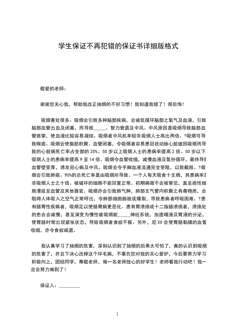 我认真学习了抽烟的危害,深刻认识到了抽烟的后果太可怕了,真的认识到吸烟的危害了,并且下决心改掉这个坏毛病,不辜负您对我的关心爱护,今后要努力学习,积极向上,团结同学,尊敬老师,做一名老师放心的好学生!老师看我行动吧!我一定会努力做到了!