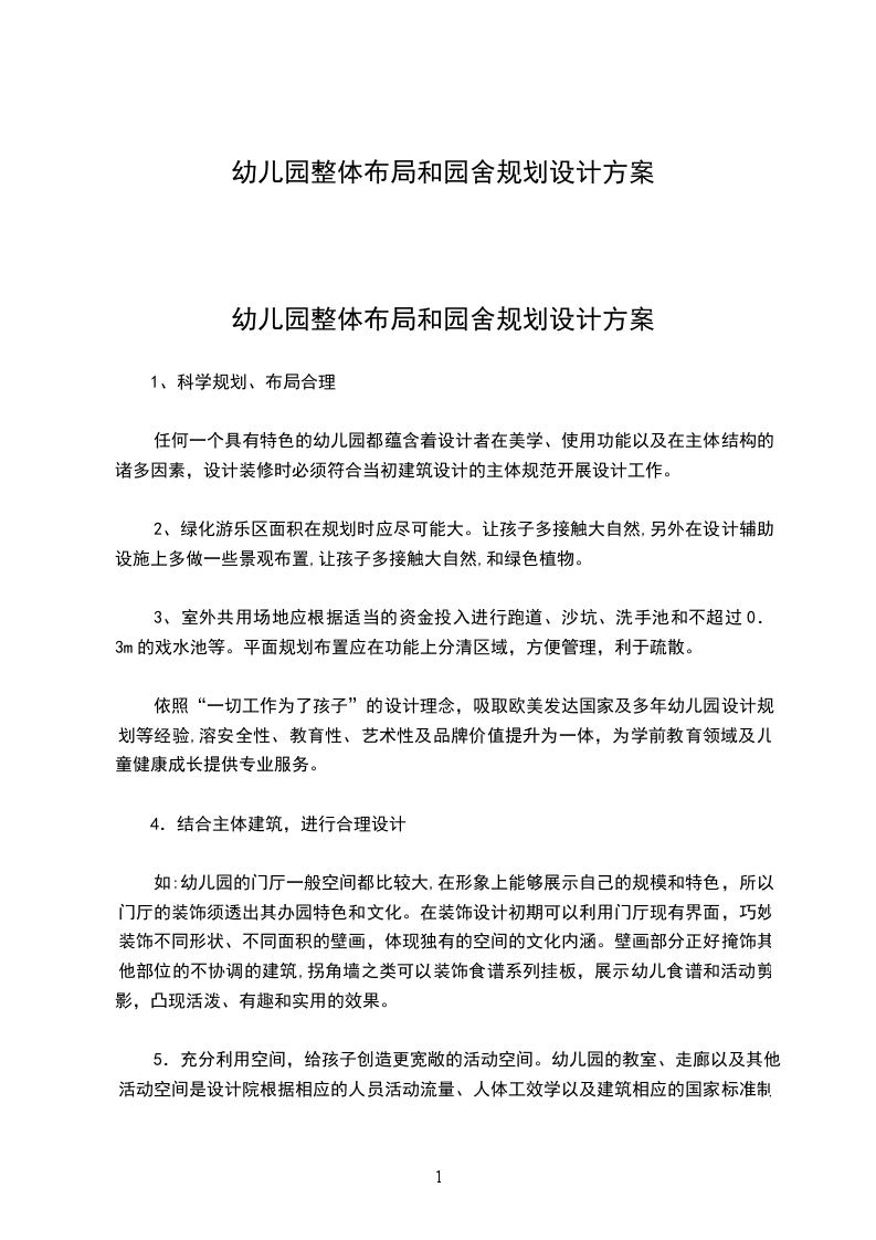 幼儿园规划设计草案根据江苏省教育厅日前下发的农村合格幼儿园办学条件基本要求(试行),为推进农村合格幼儿园建设,大力改善农村幼儿园办学条件,拟制定本方案: