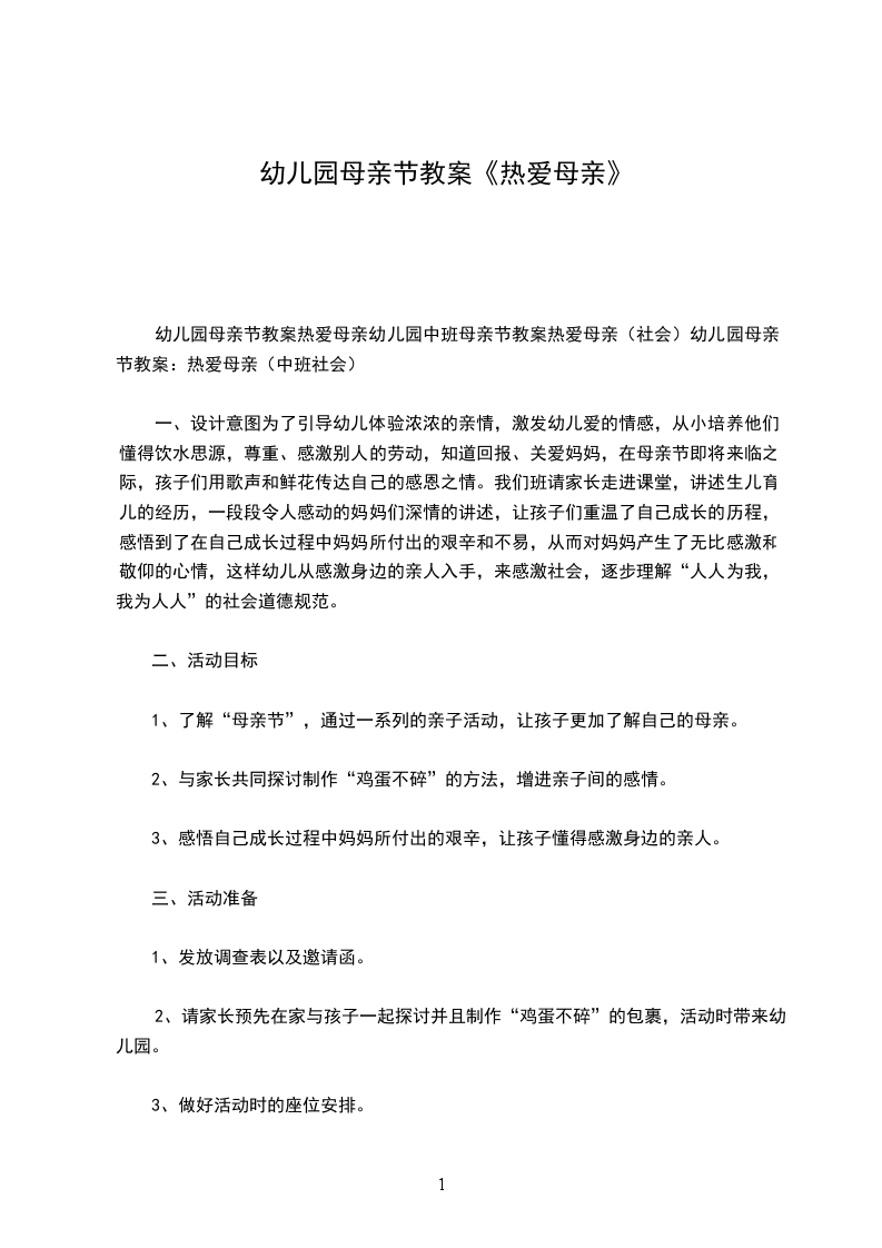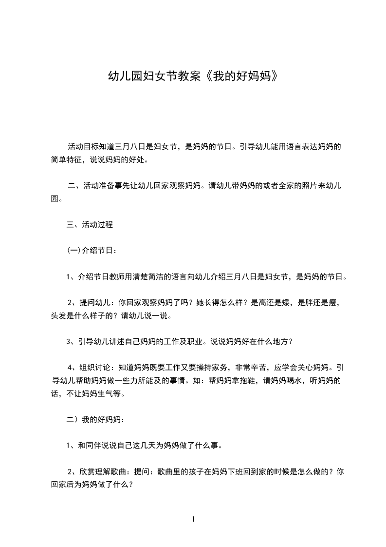 1、通过亲子活动,使幼儿进一步体验与妈妈之间浓浓的亲情,激发爱妈妈的情感。