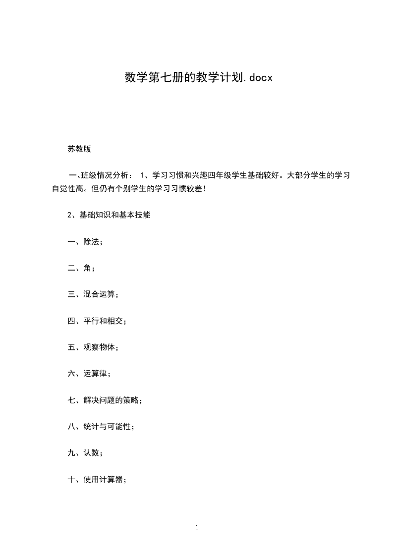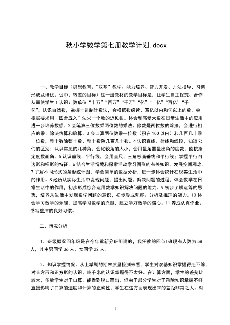 (一)本学期教学目标本期教材知识内容为“基本的几何图形”、“有理数”、“有理数的运算”、“数据的收集与简单统计图”、“代数式与函数的初步认识”、“整式的加减”、“数值估算”、“一元一次方程”。