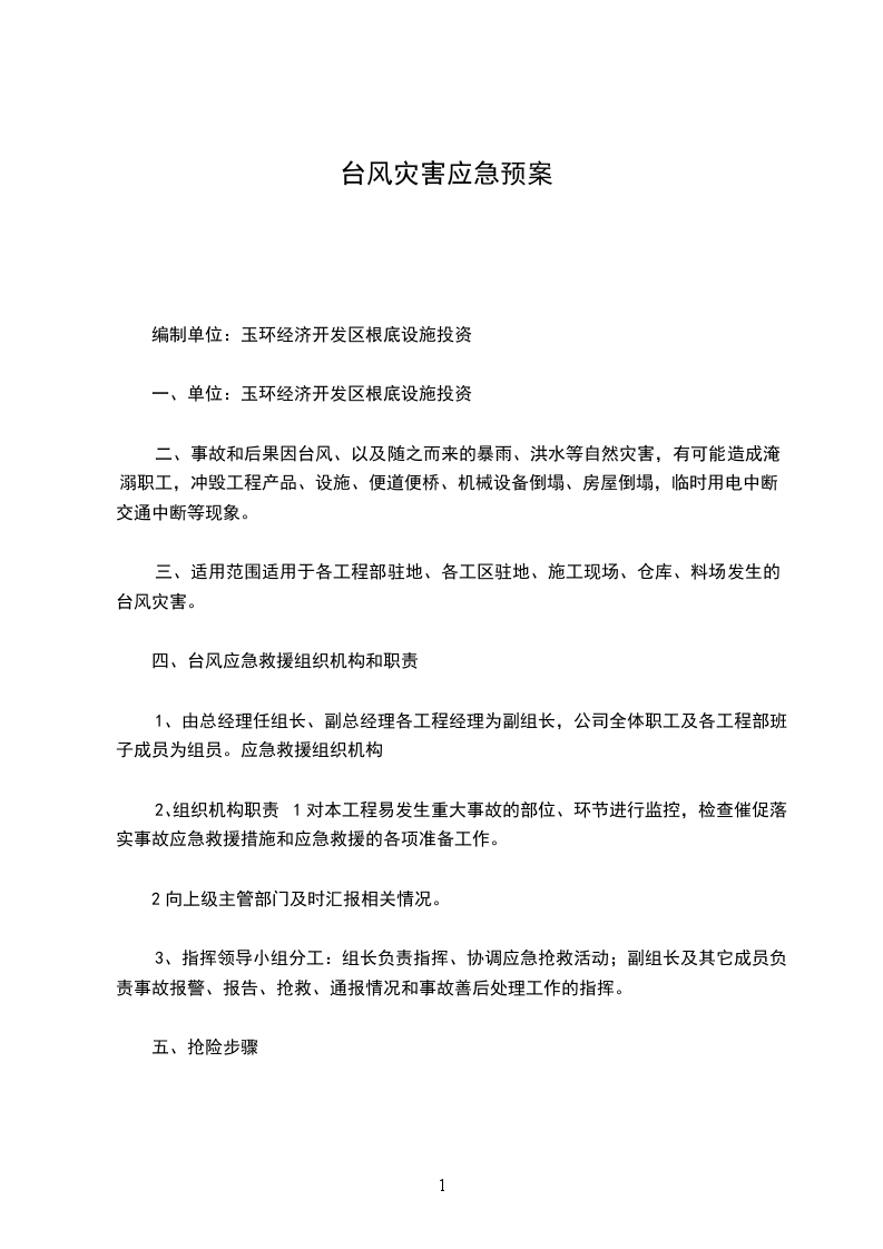 一、应急指挥领导小组:组长:副组长:成员:发生台风灾害,有关部门要各司其职,通力合作。应急工作原则:统一领导、部门分工、分级负责、综合协调、快速高效。