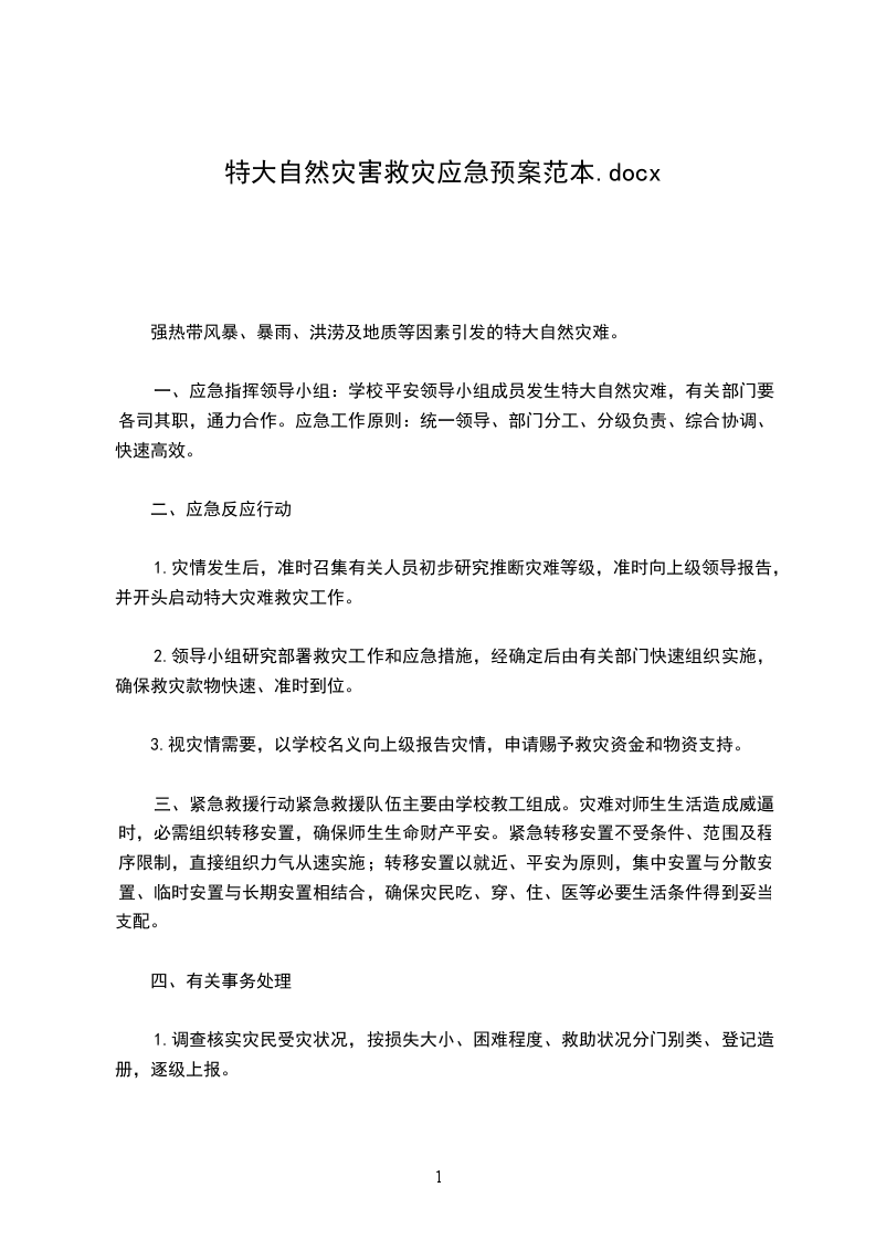 1.灾情发生后,及时召集有关人员初步研究判断灾害等级,及时向上级领导报告,并开始启动特大灾害救灾工作。