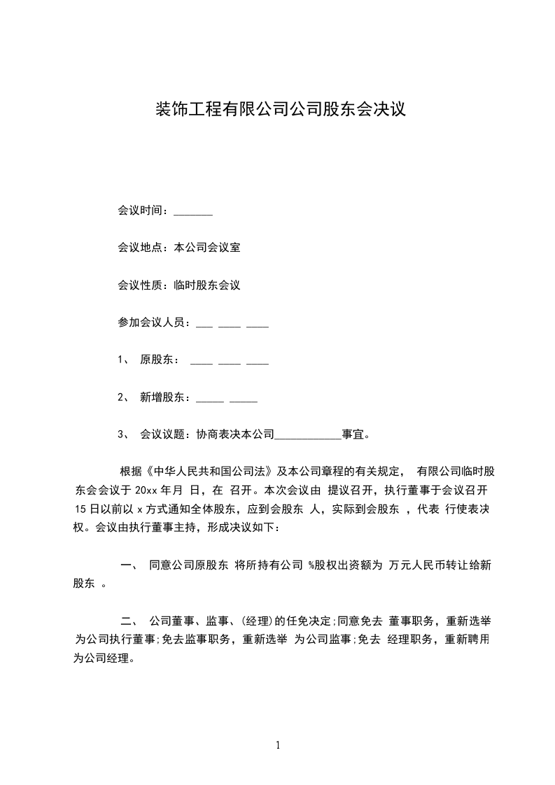 根据《中华人民共和国公司法》及本公司章程的有关规定, 有限公司临时股东会会议于20xx年月 日,在 召开。本次会议由 提议召开,执行董事于会议召开15日以前以x方式通知全体股东,应到会股东 人,实际到会股东 ,代表 行使表决权。会议由执行董事主持,形成决议如下: