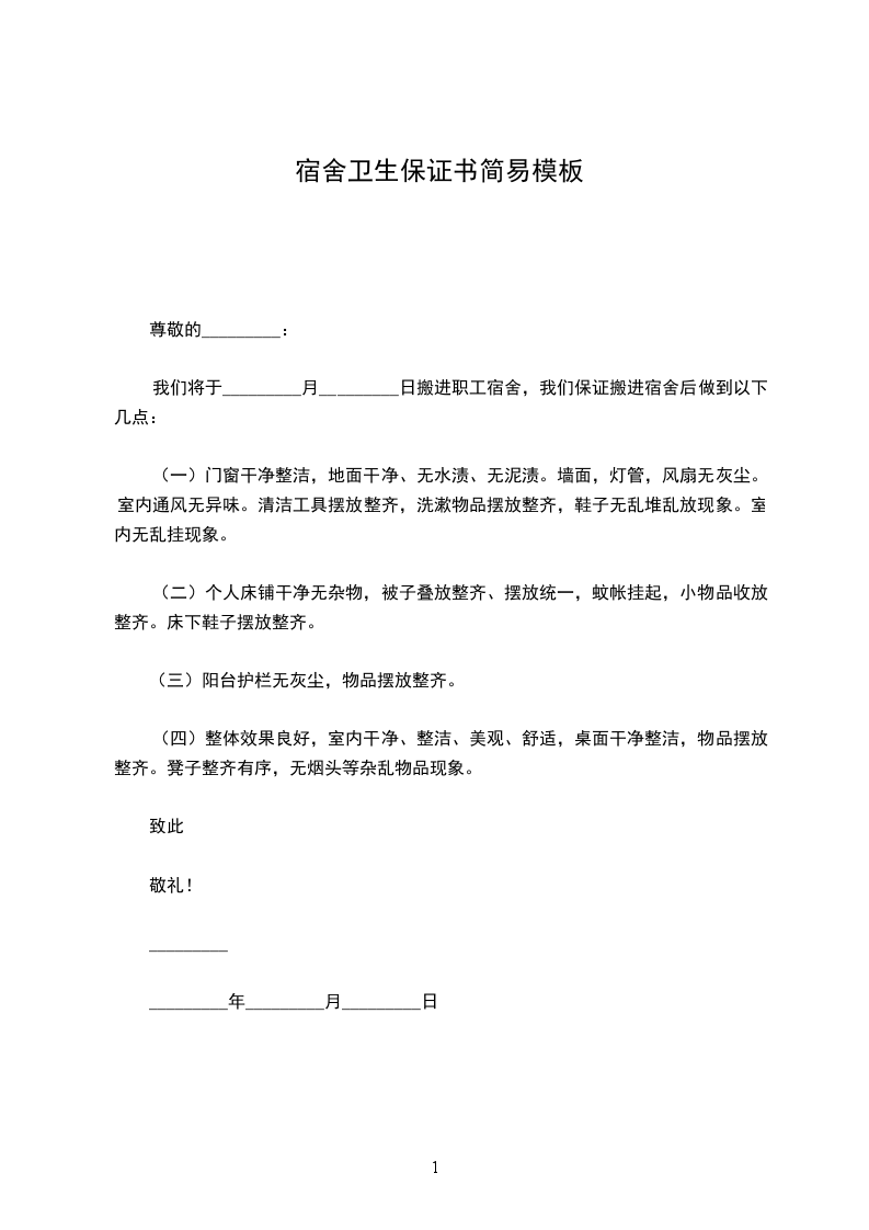我们将于_________月_________日搬进职工宿舍,我们保证搬进宿舍后做到以下几点: