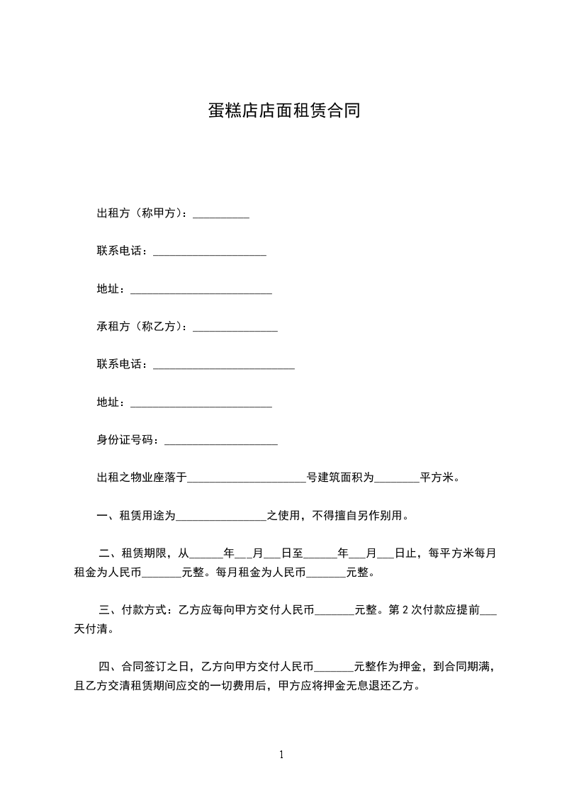5、饼店由于产品卫生质量造成的任何损失全部由甲方负责。除此之外本店面在经营过程中的一切风险,均由双方共同承担。