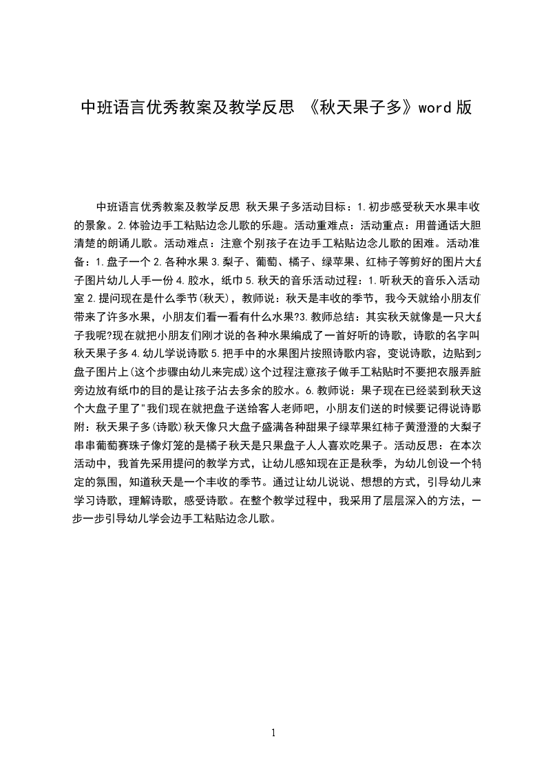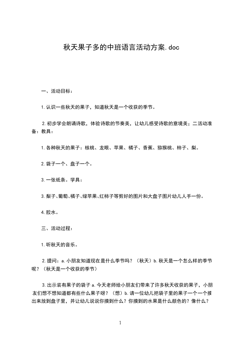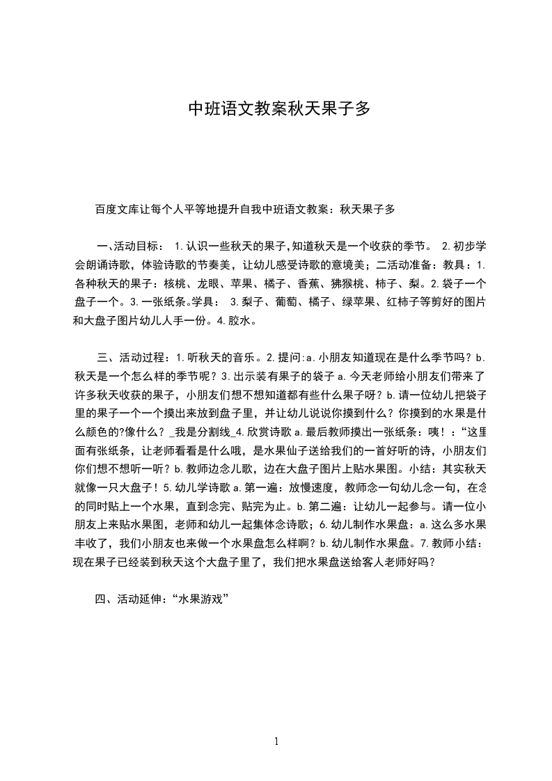 百度文库让每个人平等地提升自我中班语文教案:秋天果子多