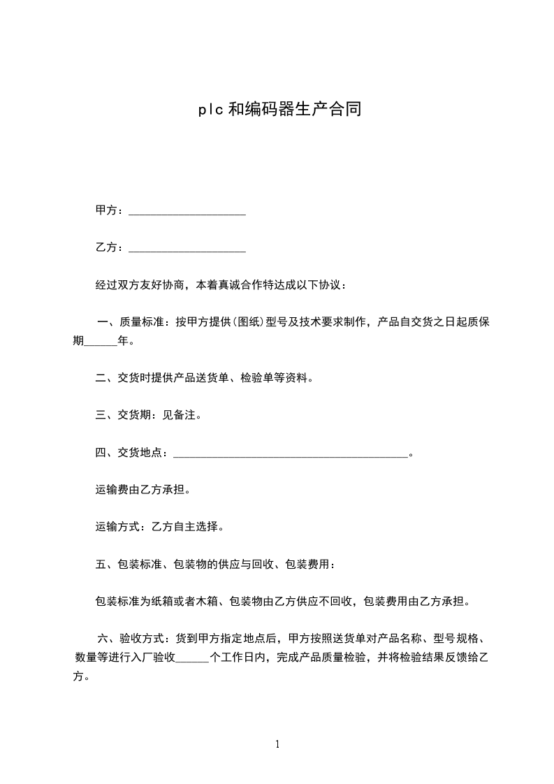 plc和编码器生产合同