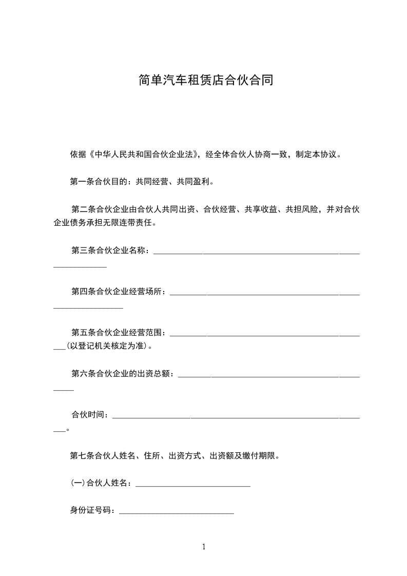 第一条合伙目的:共同经营、共同盈利。