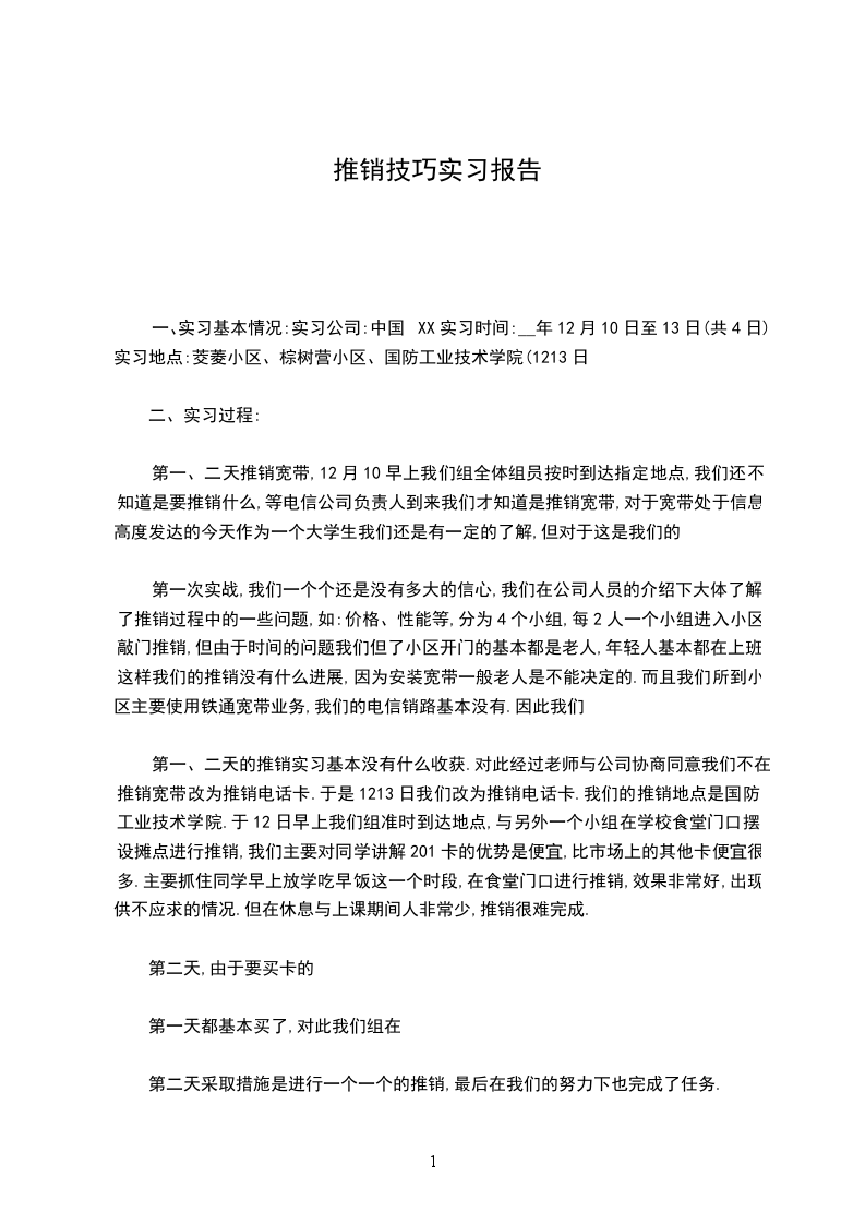 第一、二天的推销实习基本没有什么收获.对此经过老师与公司协商同意我们不在推销宽带改为推销电话卡.于是1213日我们改为推销电话卡.我们的推销地点是国防工业技术学院.于12日早上我们组准时到达地点,与另外一个小组在学校食堂门口摆设摊点进行推销,我们主要对同学讲解201卡的优势是便宜,比市场上的其他卡便宜很多.主要抓住同学早上放学吃早饭这一个时段,在食堂门口进行推销,效果非常好,出现供不应求的情况.但在休息与上课期间人非常少,推销很难完成.