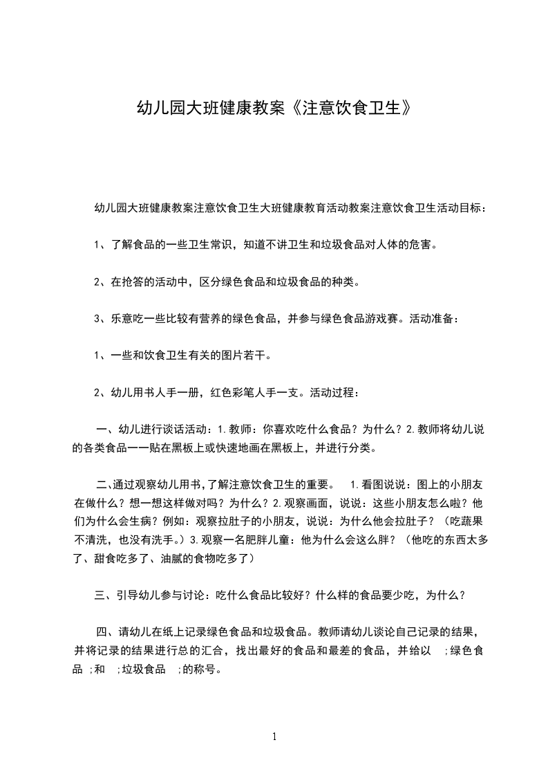 幼儿园大班健康教案注意饮食卫生大班健康教育活动教案注意饮食卫生活动目标: