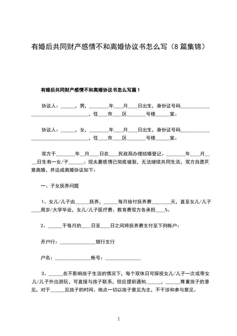 有婚后共同财产感情不和离婚协议书怎么写篇8