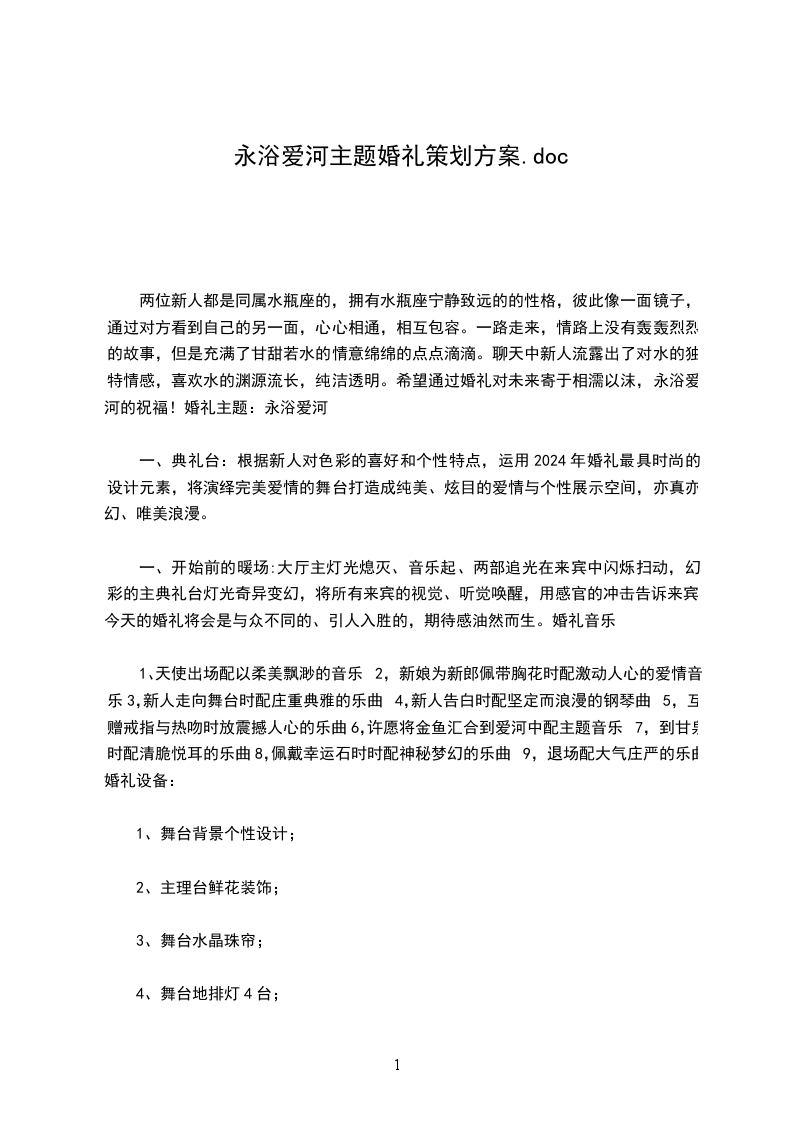 一、典礼台:根据新人对色彩的喜好和个性特点,运用20_年婚礼时尚的设计元素,将演绎完美爱情的舞台打造成纯美、炫目的爱情与个性展示空间,亦真亦幻、唯美浪漫。