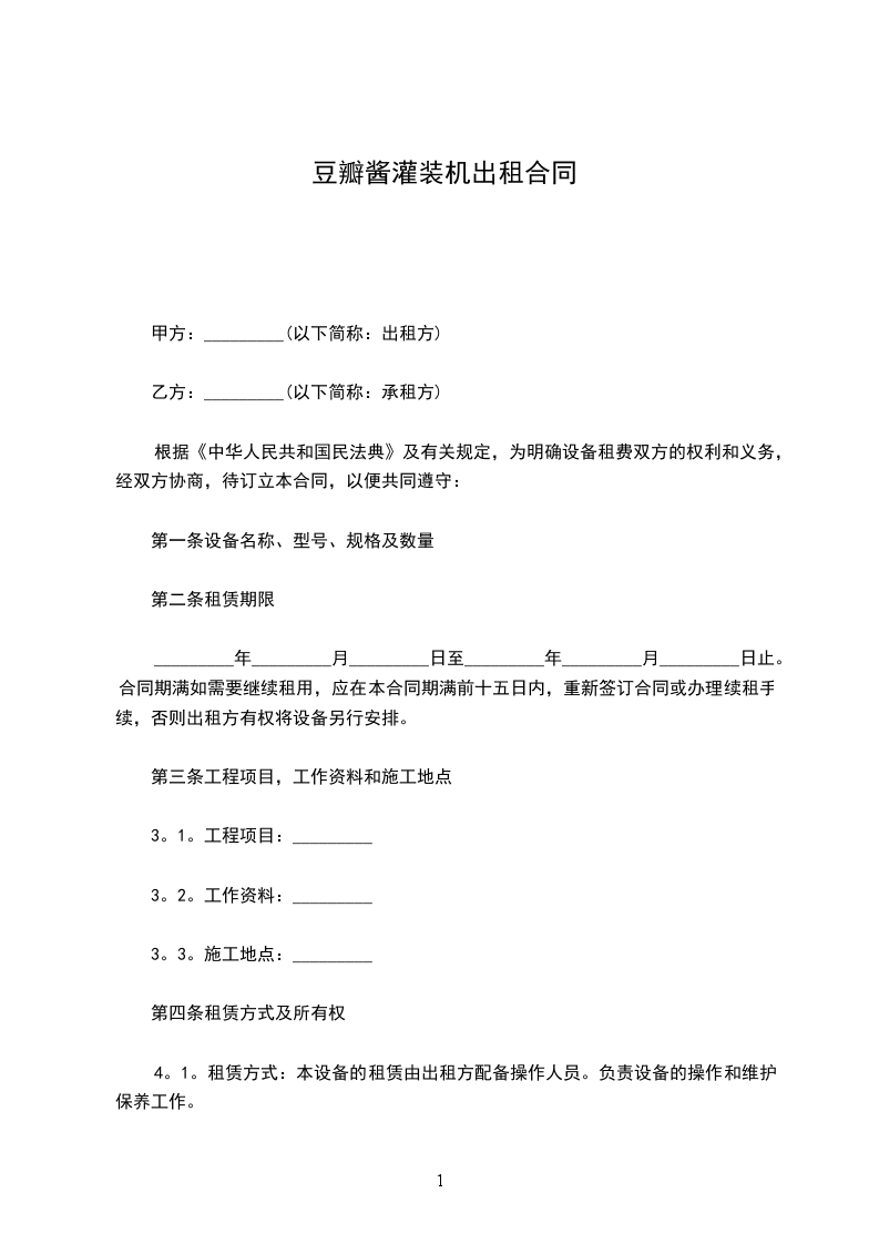1、自签订合同起甲方需预付给乙方定金为总货款的______%,计人民币________________________(¥__________________元)。