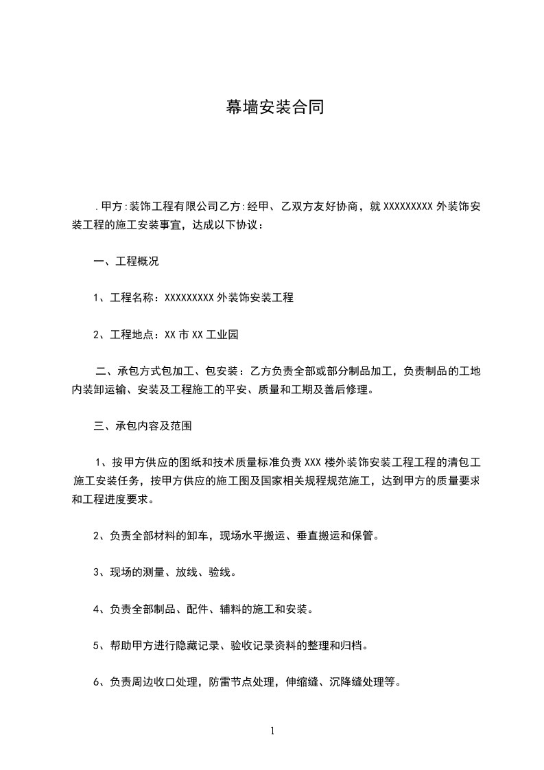 甲乙双方本着平等互利的原则签订外墙石材幕墙安装分包工程,经协商一致,达成协议,共同遵守下列条款: