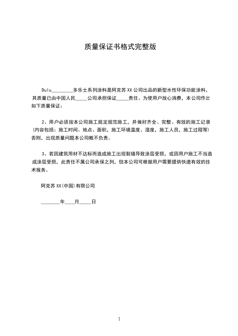 Dulu_________多乐士系列涂料是阿克苏XX公司出品的新型水性环保功能涂料,其质量已由中国人民_____公司承担保证_____责任。为使用户放心消费,本公司作出如下质量保证: