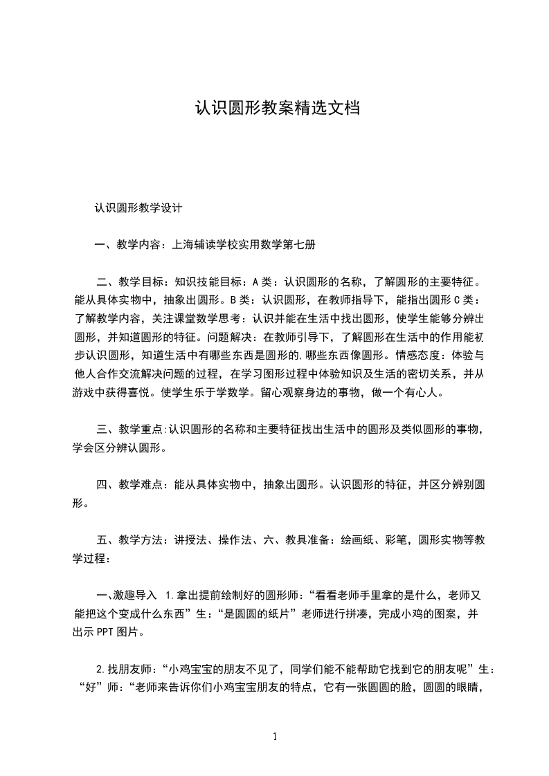 1、通过游戏的方式,幼儿认识圆形(圆面和圆圈)