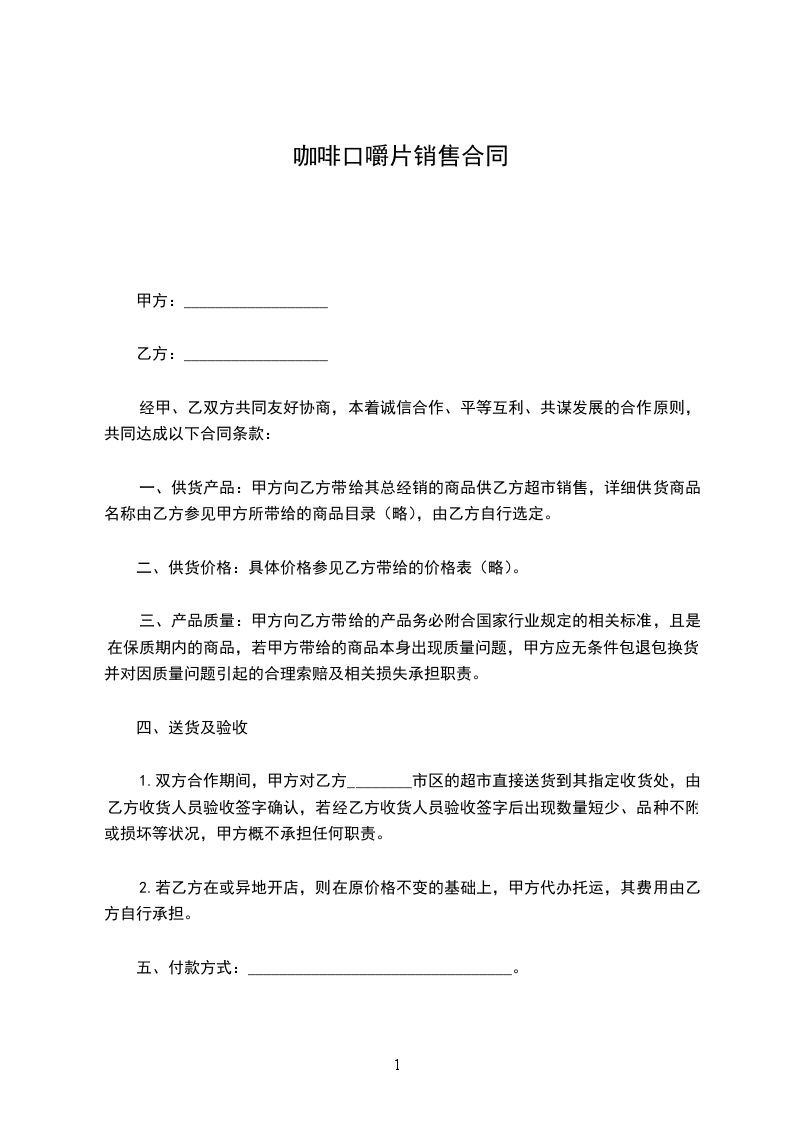 咖啡口嚼片销售合同