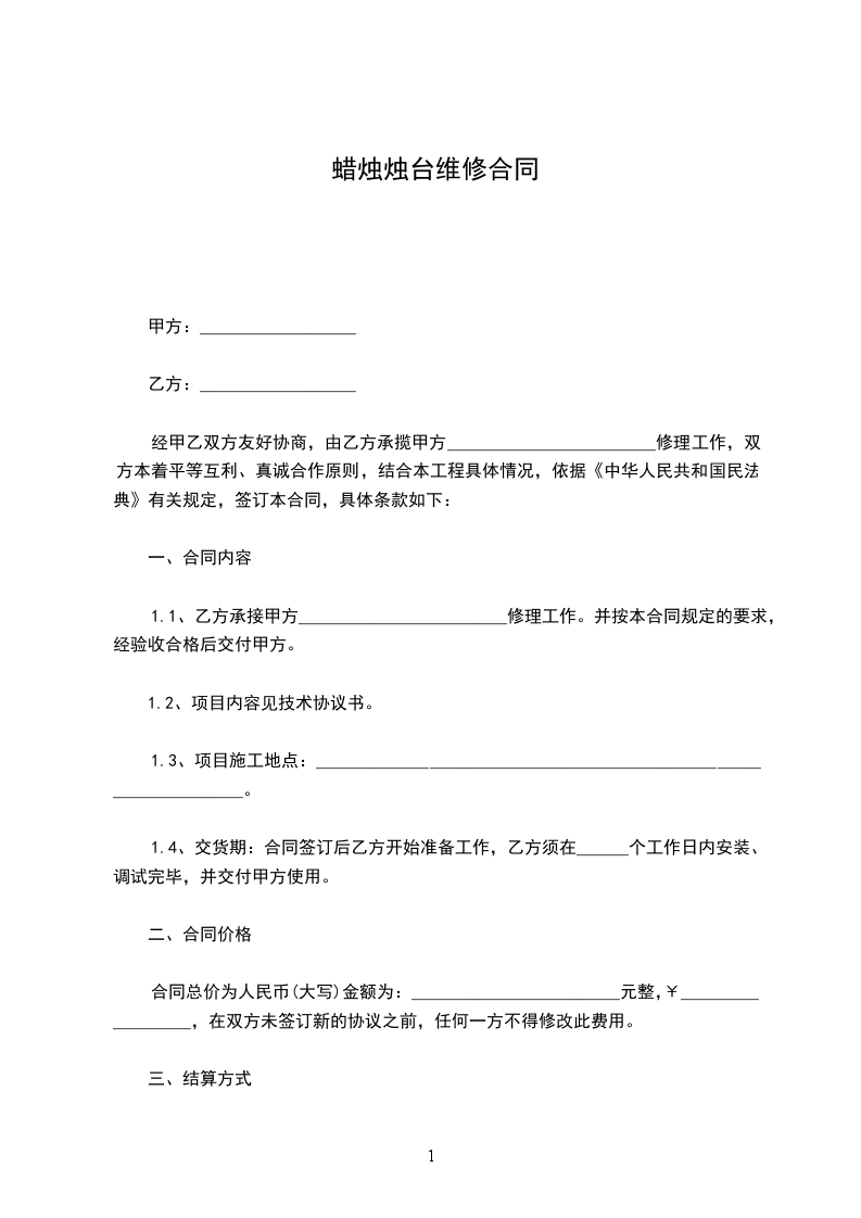 合计(大写)__________________________________元经甲、乙双方协商同意。乙方特委托甲乙维修保养机器。为保证甲乙双方权益,特订立如下协议:
