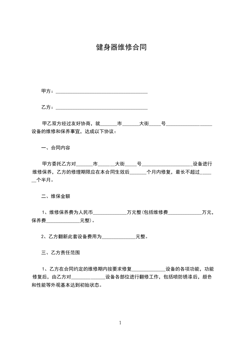 甲方委托乙方对_______市_______大街_____号_____________________设备进行维修保养,乙方的修理期限应在本合同生效后_______个月内修复,最长不超过_______个半月。