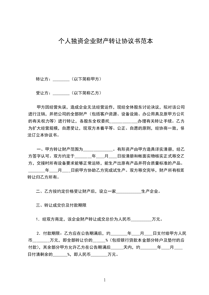 1.经双方商定,该企业财产转让成交总价为人民币__________万元。