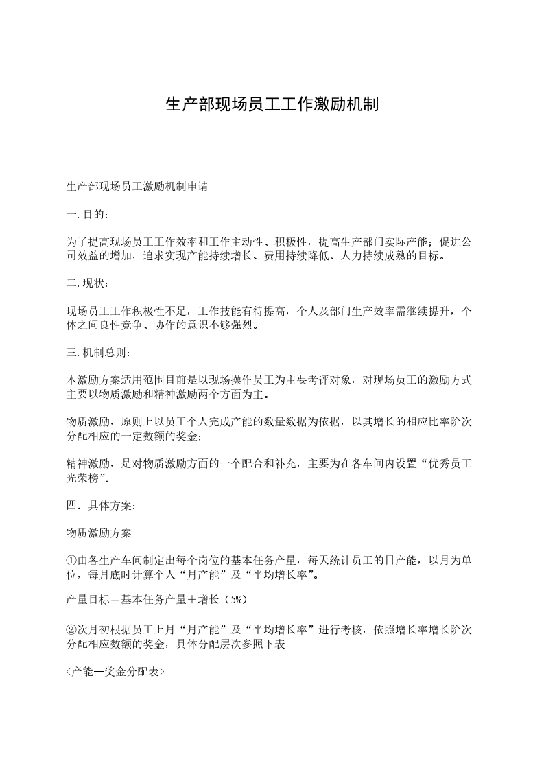 生产部现场员工激励机制申请
