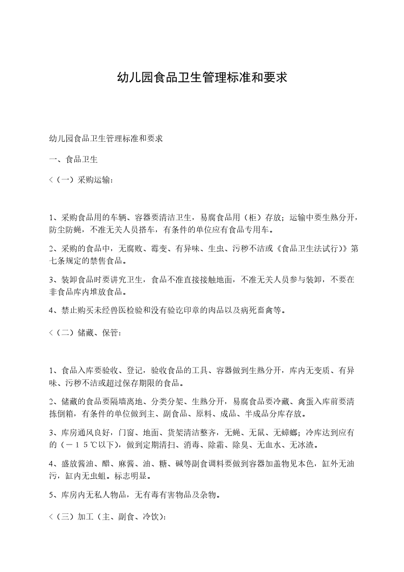 <(一)采购运输:1、采购食品用的车辆、容器要清洁卫生,易腐食品用(柜)存放;运输中要生熟分开,防尘防蝇,不准无关人员搭车,有条件的单位应有食品专用车。
