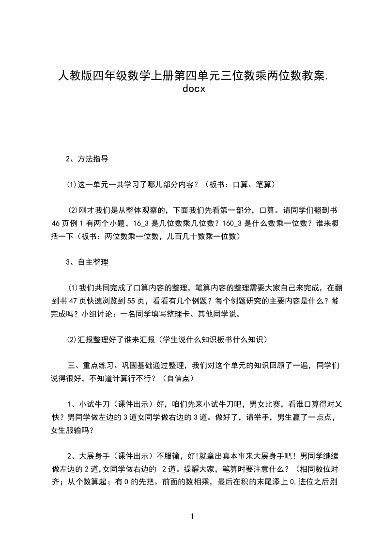 十、整百数的多种口算方法,学生能正确的进行口算。新五环节教学法数学授课教案学习内容笔算乘法学习时间428课时第二课时课型新课学习目标