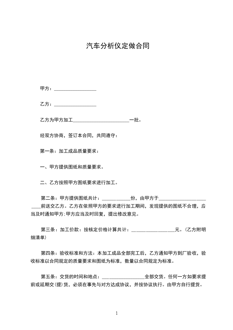 一、质量标准:按甲方提供(图纸)型号及技术要求制作,产品自交货之日起质保期______年。