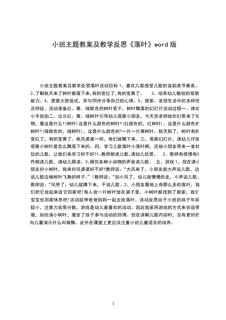 (五)作品欣赏、评价欣赏欣赏幼儿作品,要求幼儿说出自己的作品创意,说出用的是什么树的落叶。活动反思:本次活动一开始我先出示树的图片,引起幼儿的注意,然后再慢慢引导落叶,让幼儿在两片双胞胎叶子中找不同点,幼儿找得还是很仔细的,有很多幼儿都能说出两片叶子的不同点,但在幼儿在找梨和叶子的相同点的时候,有点困难,但经过老师的引导,幼儿幼儿能说出几个,所以老师的引导还是很重要的,最后让幼儿观看了春天叶子萌芽的视频,让幼儿充分的感受到了大自然循环的规律。