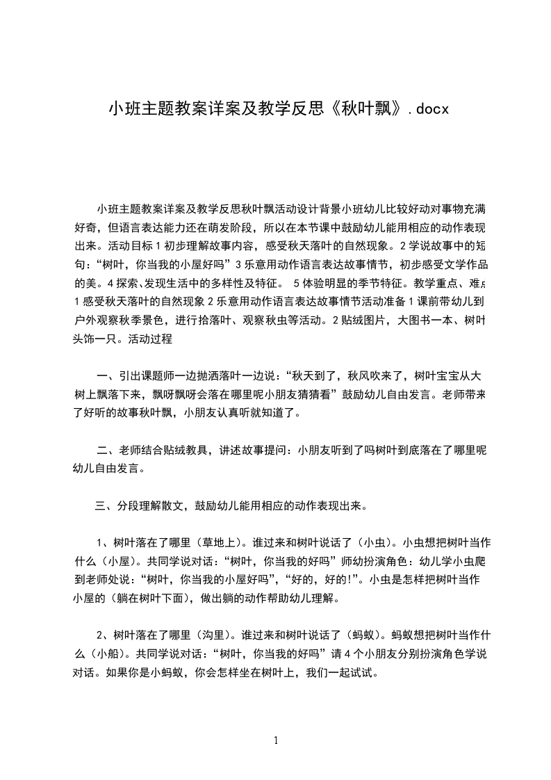 (一)观察落叶带领幼儿观察深秋的自然景色,从气温、农作物、树叶变化,感受秋天快要过去了。重点组织幼儿观看小树叶从树上落下来的情景,并让幼儿来拣落叶,追落叶。把拣到的落叶分开来拿,干落叶在右手,未干落叶在左手。(幼儿在拣落叶过程中,来分辨干落叶和未干落叶,锻炼幼儿在不限落叶的形状、大小、颜色等来分类。)