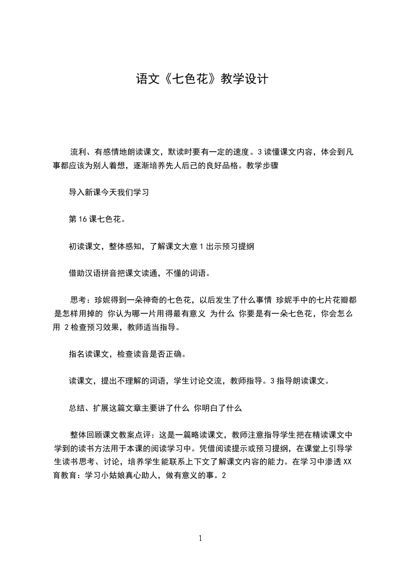 思考:珍妮得到一朵神奇的七色花,以后发生了什么事情 珍妮手中的七片花瓣都是怎样用掉的 你认为哪一片用得最有意义 为什么 你要是有一朵七色花,你会怎么用 2检查预习效果,教师适当指导。