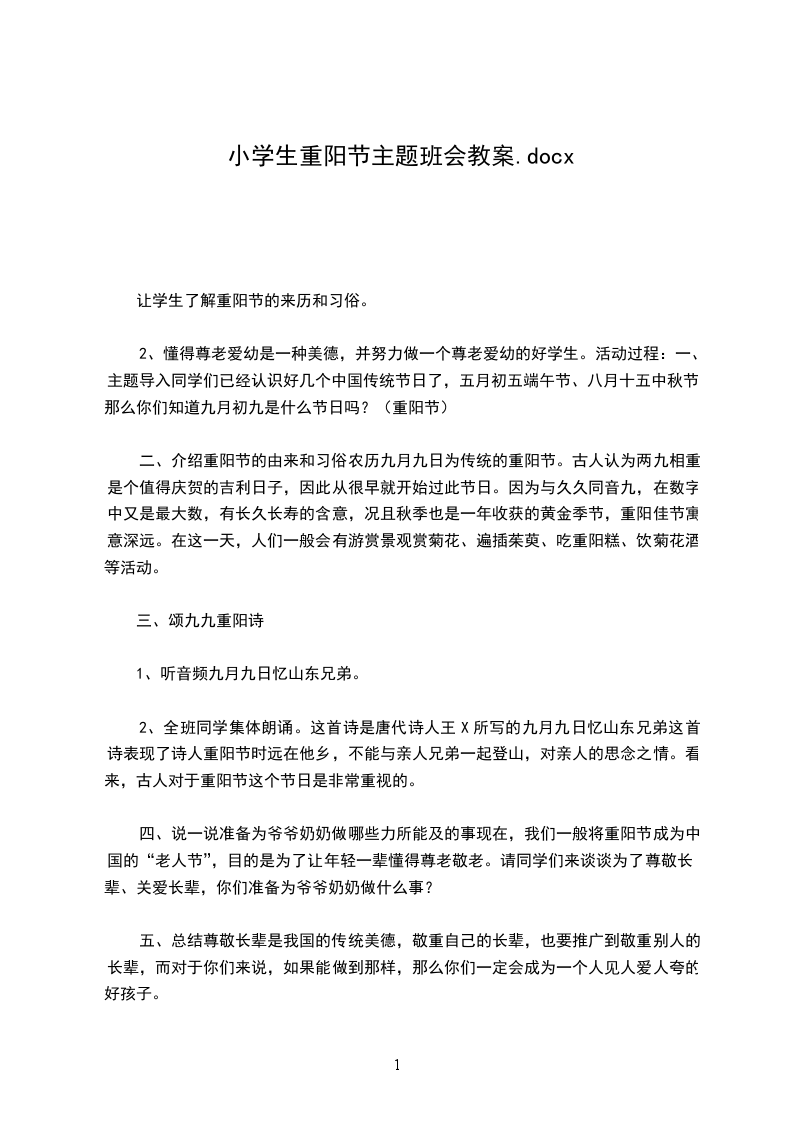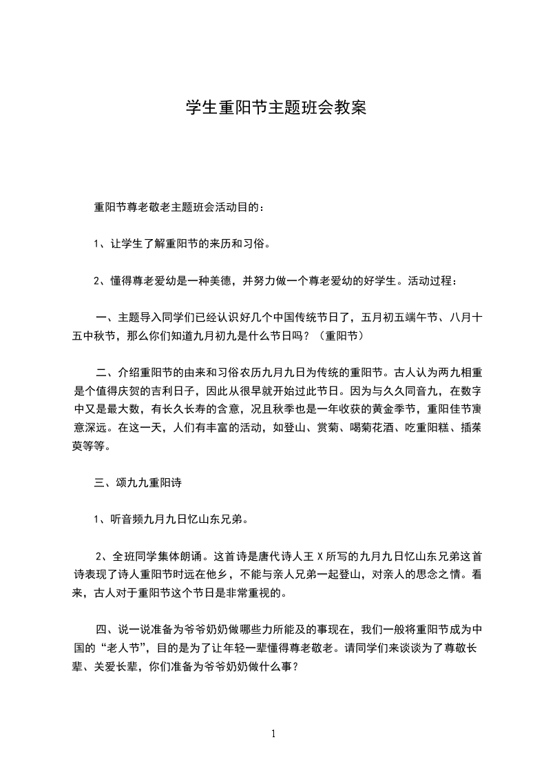 重阳节尊老敬老主题班会活动目的: