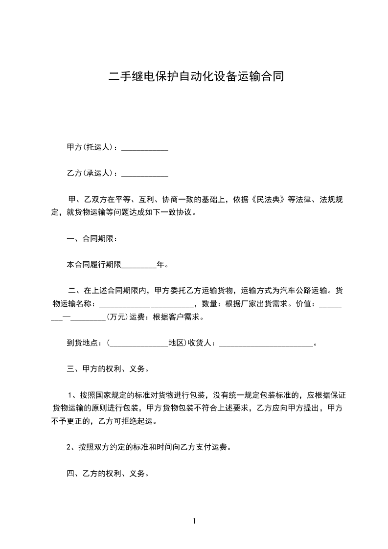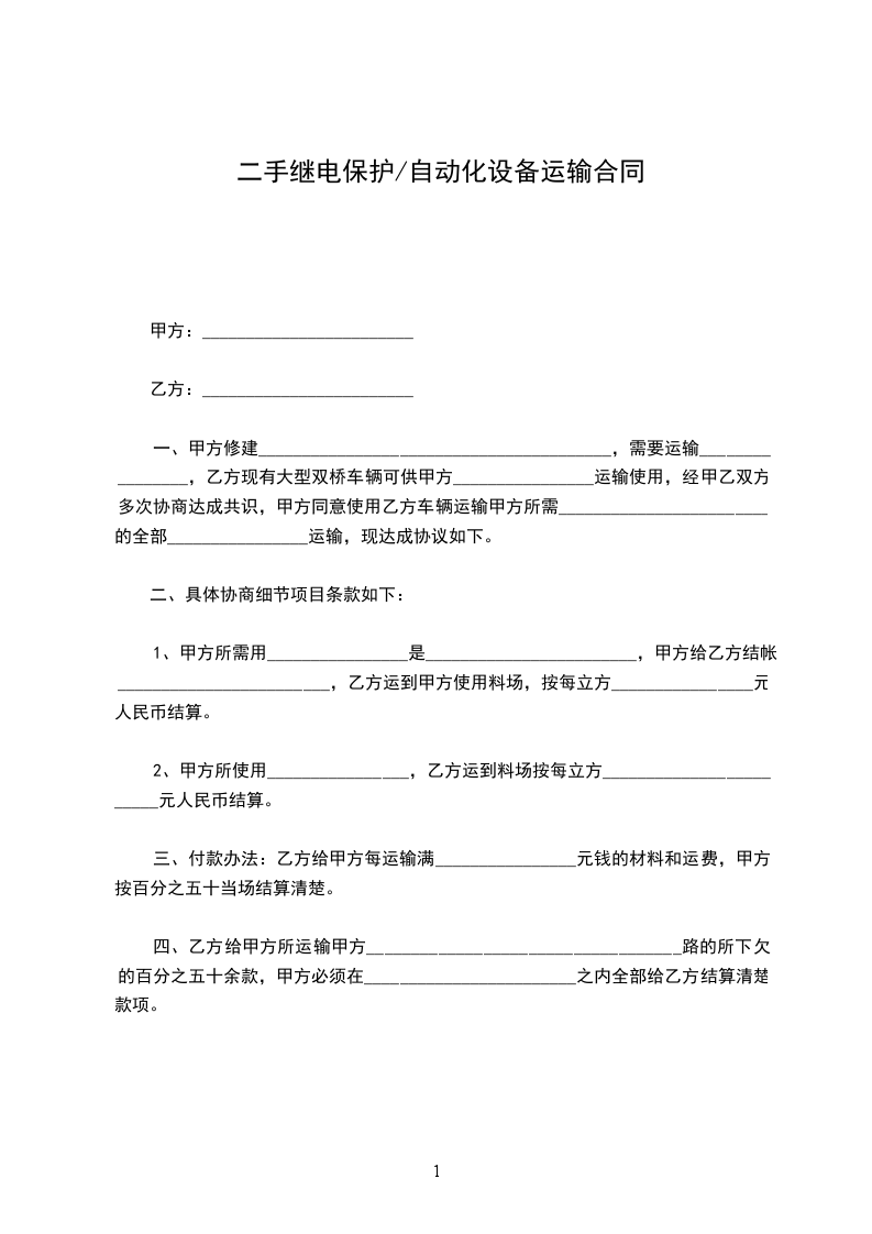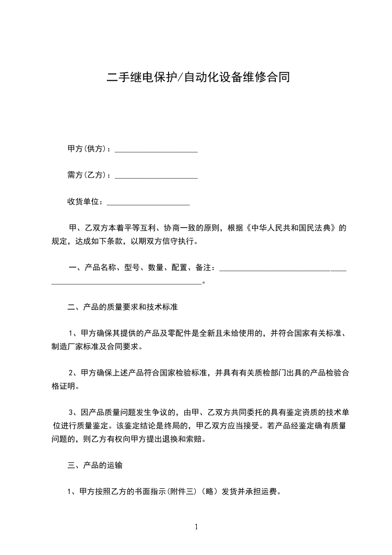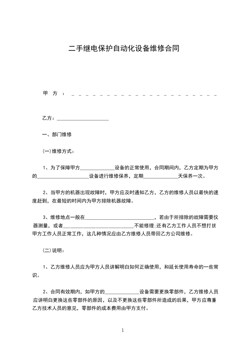 1、为了保障甲方______________设备的正常使用,合同期间内,乙方定期为甲方的_____________________设备进行维修保养,定期______________天保养一次。