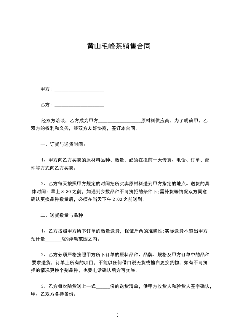 1、乙方按照甲方所下订单的数量送货,保证斤两的准确性;实际送货不超出甲方预计量_______%的浮动范围之内。