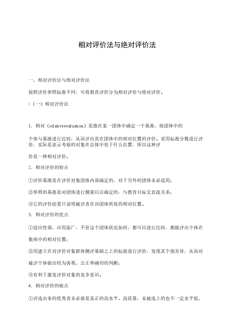 <(二)绝对评价法1.绝对(absoluteevaluation)是在评价对象的群体之外,以预先制定的目标为评价基准,把评价对象与之比较,确定评价对象达到目标基准绝对位置的评价。