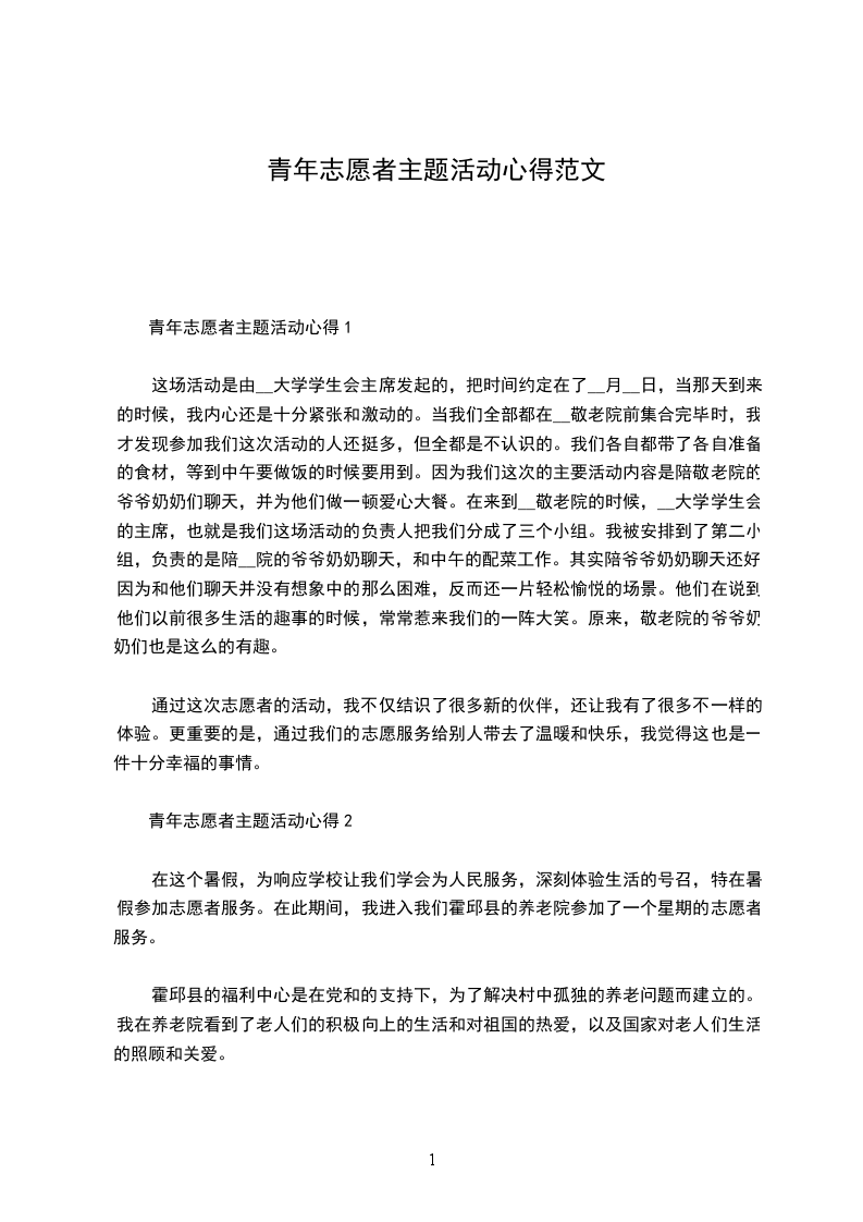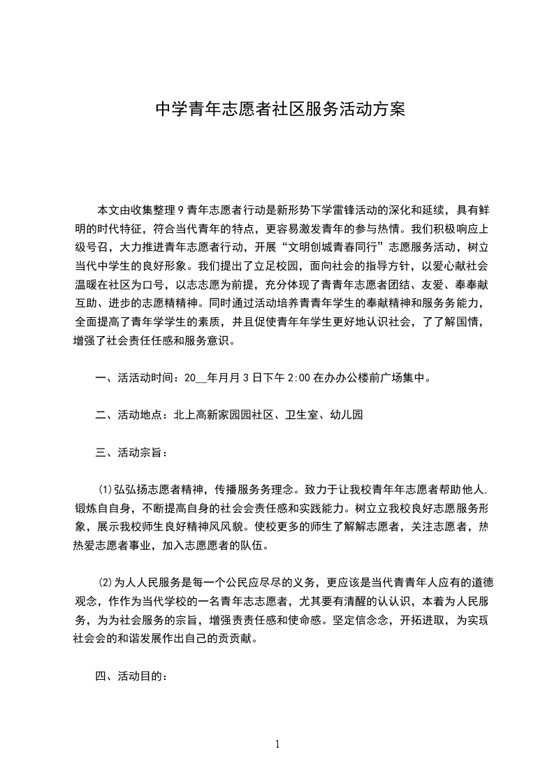 一、活动主题争做志愿者,创造新生活