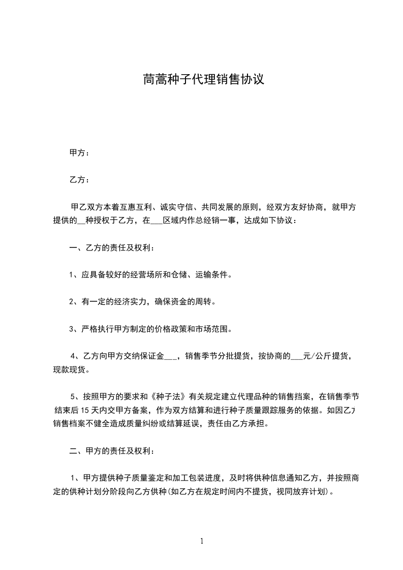 茼蒿种子运输合同