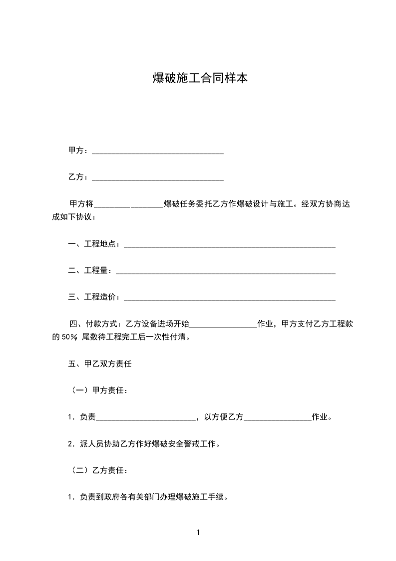 甲方将_________________爆破任务委托乙方作爆破设计与施工。经双方协商达成如下协议: