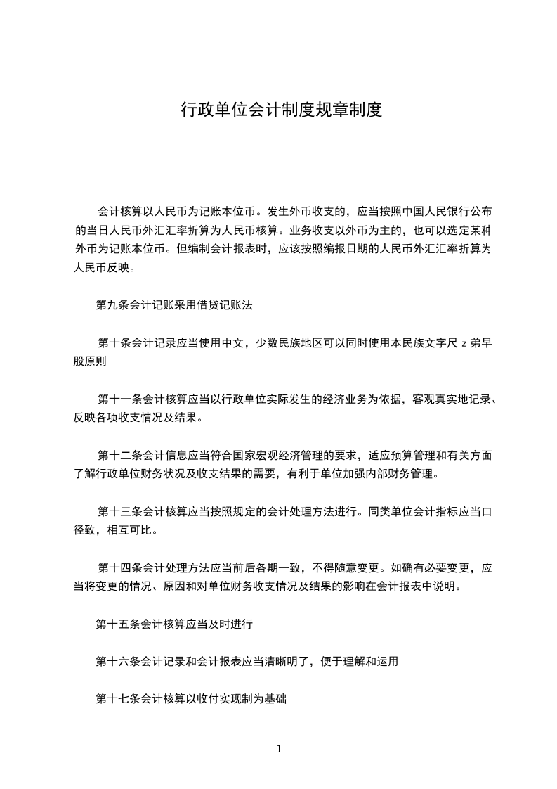 第十七条会计核算以收付实现制为基础