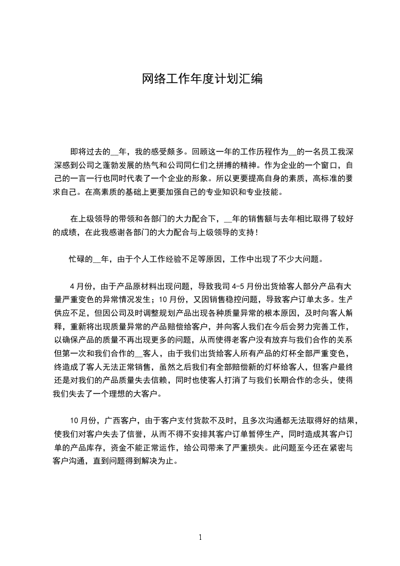 XXX软光条的产品信息发布与企业品牌的宣传(日常工作内容)在这一周的工作中,对产品有一些初步的了解,对网络推广有一些帮助。日后需要加强对产品更全面的了解,能写出有质量的文章,增加更多的外链。对关键进行进一步的分析。做好seo,提升网站pr值。总之,经常学习,提升自己。网络营销工作总结工作两个月了,总的来说,就是压力大,一直想出成绩,但是总是把握不好机会。美国那客户(他之前和吴XX联系过,这次要不锈钢丝网,是他主动给我发的邮件),一开始是要3丝半的325目的不锈钢丝网,本来已经找到丝网了,他又说,能不能加工成他们所需要的产品,但是随着他把图纸发过来后,麻烦出现了,因为尺寸缺少数据,我反复问了他好几次,想让他把数据给全,虽然他也发过好几次的不一样的图纸,但是数据总是不够。后来我让他提供样品,他说按他给的图纸百分之百打印出来就行,没必要提供样品,这期间,价格都说好了。就因为我们迟迟不能加工他们所需产品,没有机会了,他选择了以前的供应商给他提供。伤心啊!关于这个事,我想如果我们的电脑有cad软件,咱们可以自己测量所需的弧度、角度,长度和面积等数据,这样就不用一次又一次的让客户提供数据,只要他们提供数图纸和部分数据。关于新加坡的尼龙网,我现在每天都在关注他,他从5月11号到现在一直在求购,也许是他要的这种产品实在是太难找。一开始我联系到他后,他在网上发布的是求购涤纶网,我就说我们可以为他提供,后来他发给我图片后,我才发现他要的是尼龙网,我想既然答应了,就帮他找吧,但是说自己是生产厂家。刚开始那几天,他对我的邮件回复,很及时,并且提出让我给他寄样品,快递费到付,并且他都没告诉我,就把他所需的产品的样品寄过来了。因为我对他隐瞒了好多实情,所以好多他想知道的,我都无法及时地告诉他,有一天下午,我刚来到办公室没多久,他就打电话过来了,因为他给的样品还没有寄到我联系的厂家,我依然无法答复他,也许是在电话中他听出来了,就推断咱们不能提供,后来无论我是发邮件,还是在线聊天,他都不理我。结果是不好,但是我觉得自己尽力了,为了应付他的问题,我曾经没法好好地睡觉,但是找不到好的理由,我真的太不擅长撒谎了。关于慧聪网,每天只要有客户需求的是咱们能提供的产品,我就给他们打电话,这些客户中,大部分是求购涤纶网的,但是只要我报价过去后,很多都说,价格太高,高好多,他们实在是没法接受,即使是九折,他们也接受不了,我就真没有办法给他们说些什么.有一部分就是报价后,没有信儿,我问时,就说还没看,关于这些客户,我会不断地联系,期望出现奇迹。还有就是,我太急于求成,以至于有点心不在焉的现象,有个客户在网上发布要钢丝网,但是打电话才知道他要尼龙网,我还重复了两次尼龙网,因为我只是说尼龙网,心里想的却是涤纶网,于是挂了电话后,硬是说人家要涤纶网,幸亏经理及时提醒我,要不又浪费资源了。这个教训我一直记着,改,一定要改!网络营销年度个人工作总结范文写了这么多的工作总结,相信很多人都还不知道我是具体做什么工作,其实我现在转岗了,做网络销售,也就是电子商务的这一岗位了。之前有过这方面的了解,打也快,所以领导及时的做了调整。从七月份开始了我的网络销售的职场生涯。时间过的也很快,做这个岗位已经有一周的时间了。总体来说,现在的做出的业绩不是很好,但是也是可以说的过去的,当然,更不会骄傲。虽然,刚刚接触这个职位,但是网络销售相信每个人都在做,只不过行业不一样。之前的网络聊天也算是销售吧,qq聊天交友,是把自己推销给陌生人,然后就是友情的开始。这个其实也是网络销售的一种。因为销售产品,往往开始销售的是你自己。所以上周的工作主要是开始调整自己,毕竟工作职位不一样了,销售方法也是不一样的。与见不着面的客户交流,其实是一个很大的调整的,因为你揣摩不透客户想的是什么。看到他的表情,也不知道他的心理变化,所以有时候能够揣摩的就是客户打过来的,以及速度的快慢,然后开始了解他的内心变化,是否对这个产品感兴趣,是不是购买。优秀的网络销售,是可以体会到客户的心理变化的。这方面我欠缺了太多。所以现在要摆正好心态,调整好自己的情绪,积极面对这个工作带来的一切挑战。最近下了不少雨,也许是为了接下来的大暑小暑做准备吧。7月份的周工作总结是网络销售新的开始,接下来的工作更多挑战,更多面对。当然会有更多的收获。于网络营销年度总结范文1,从工作性质来说,销售是我在大学四年里没有想过的。当我顺利的拿到“工学学士学位”的时候,我以及我的亲人朋友都认为我可以成为一名出色的办公白领,要么从政,要么从文,要么深造。但是在大学的最后一个月,我决定了我要做销售,从零做起,为了更好的未来。我认为:销售本身可以锻炼人的综合素质,而且有前途。年轻的时候是受磨练的时候,当接受了我们不能接受的生活方式,忍受了我们不能忍受的事物,坚持了我们我们不能坚持的理想之后,我们做到了,也许生活变的忙的停不下来了,但是我相信,我们一定硕果累累,人生得价值也就得以升华。2,从我很早应聘那时起,我就感觉这家公司富有朝气与活力,人性化十足。这是传统公司与行业所感受不到的。那么也充满了挑战,对于初出茅庐的我,更觉得这是