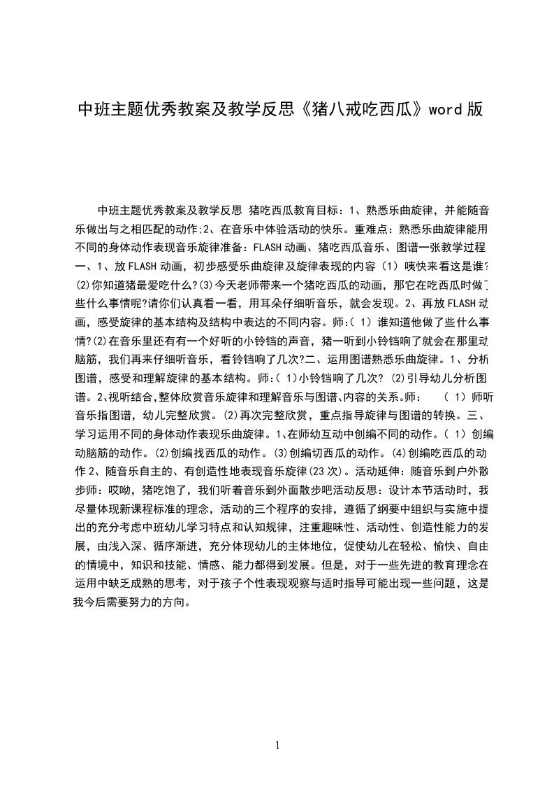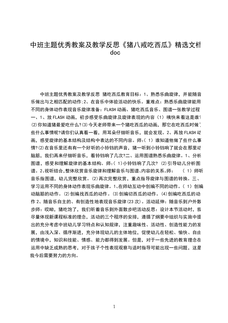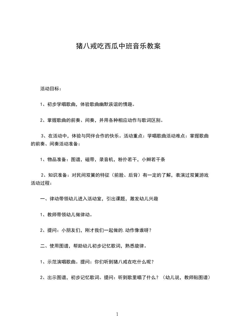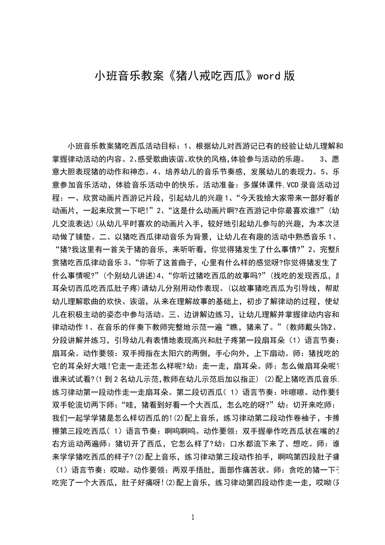 (1)语言节奏:咔嚓嚓。动作要领:双手轮流切两下师:“哇,猪看到好看一个大西瓜,怎么吃的呀”幼:切开来吃师:我们一起学学猪是怎么样切西瓜的!